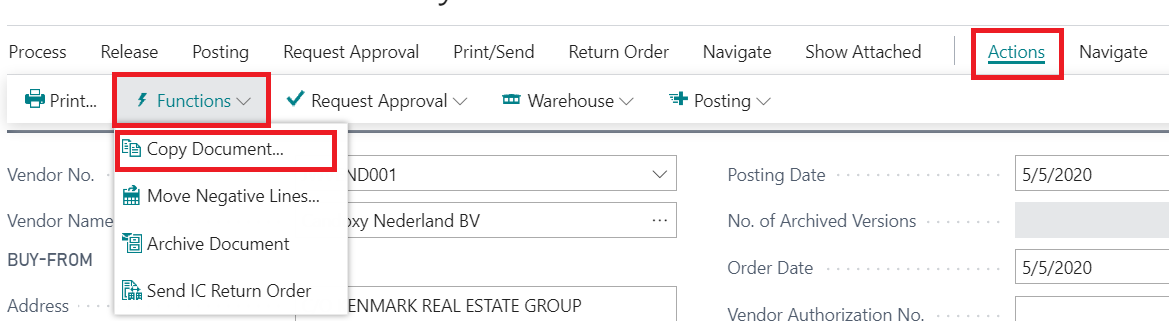 - In Document type select either ‘Posted Invoice’ or ‘Posted receipt’ to copy from.