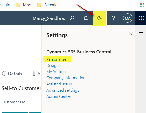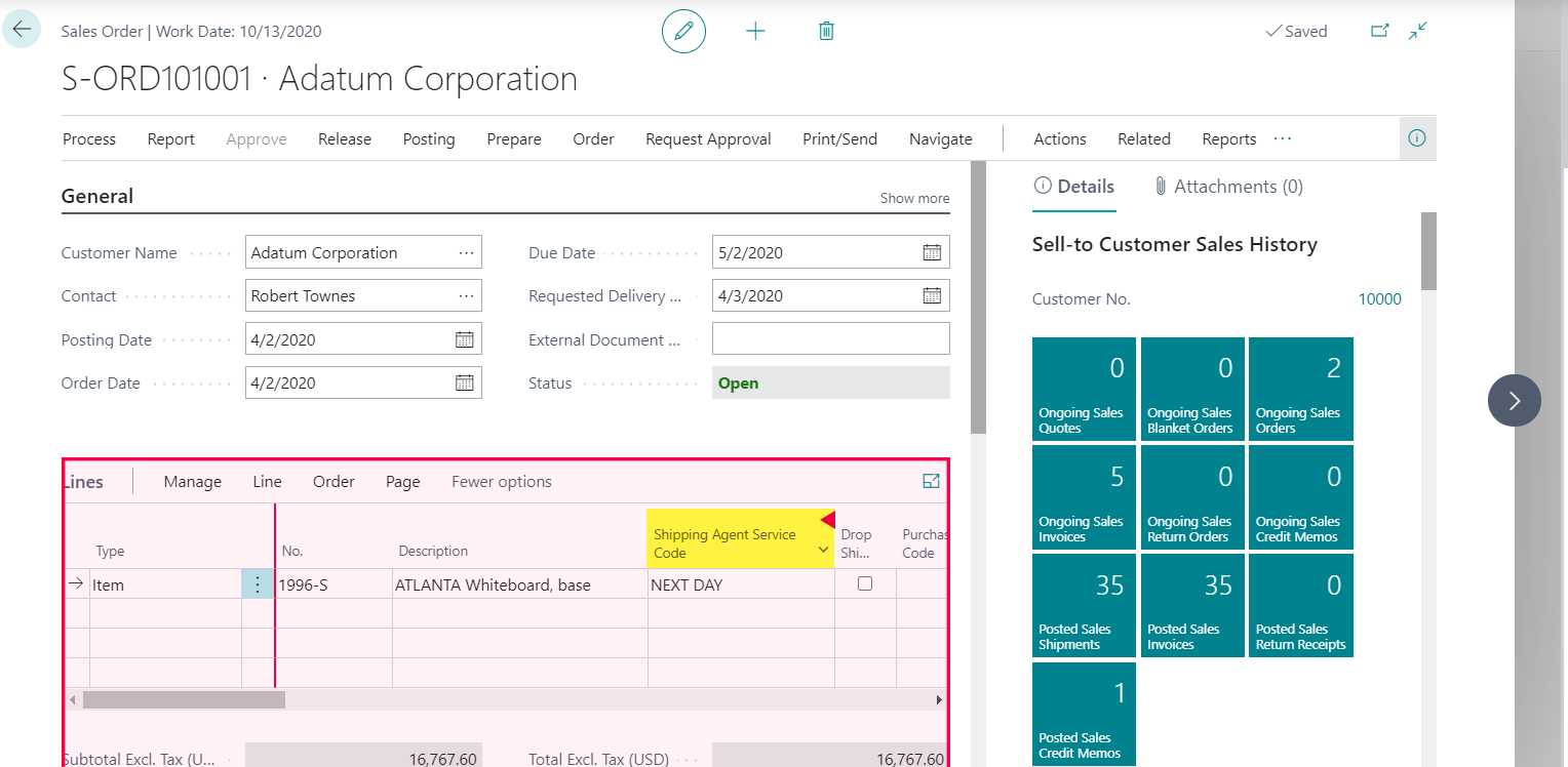 Open the page you need to add a field. In our example, we will open a Sales Order and add Shipping Agent Service Code to the Sales Lines area.