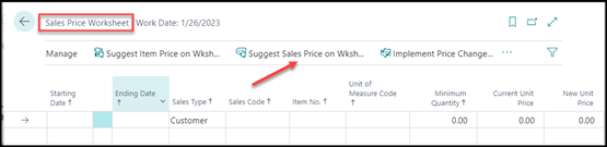 - Choose the Suggest Item Price on Wksh. action.