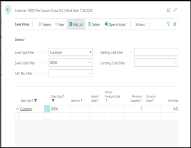 Because sales prices and sales line discounts are based on a combination of item and customer, you can also perform this configuration from the item page of the item where the rules and values apply.