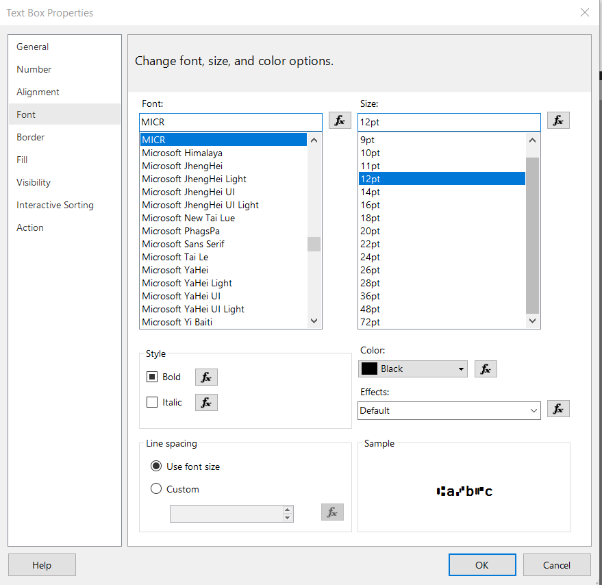 If your Check has been modified previously and you have a Custom Report Layout and need to change the Micr Font or change the symbol.