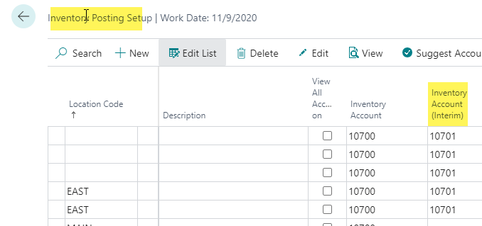 Then you can run the Inventory to G/L Reconcile report. The first columns in yellow will report this way – even with Expected Cost Posting turned off. Then the next 4 columns are with Expected Cost turned on. The total of these columns should balance back to the Chart of accounts for the interim accounts (but only if separate accounts)