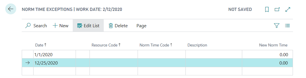 - Date - Enter the date that will not have standard norm time applied. Example: holidays that resources normally do not work.