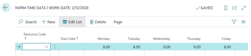 - Navigate to the Role Center > Setup > Resource Setup > Norm Working Hours