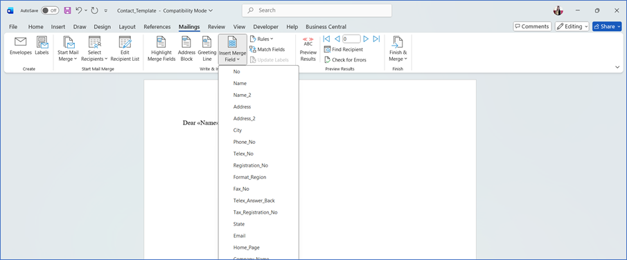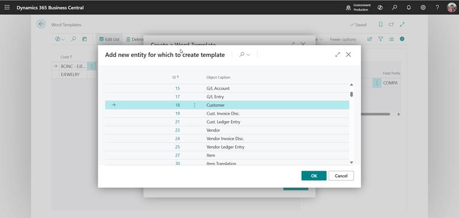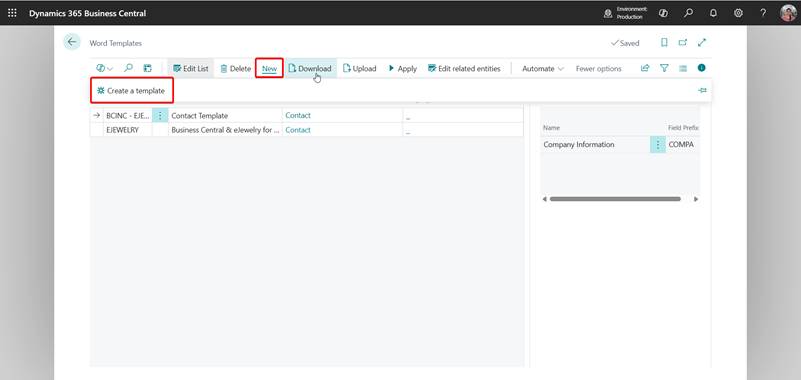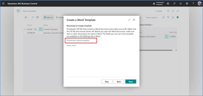 - Go back to Business Central → Word Templates page.