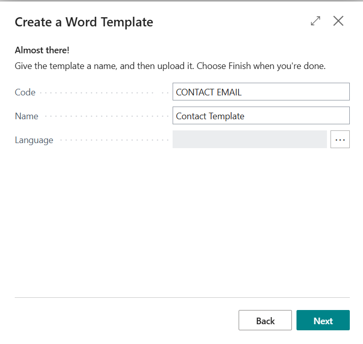 System will show the details of uploaded template, click next. On the next screen enter code, name, language and click next and then finish